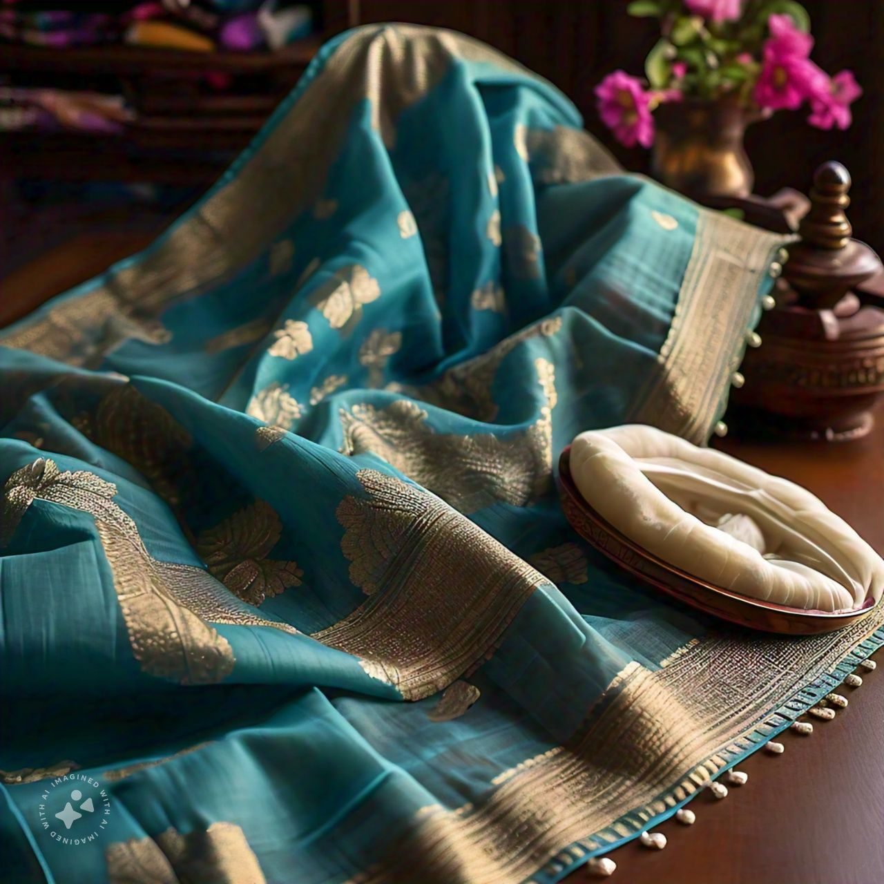 Our skilled artisans use traditional techniques to revive the saree’s original luster.